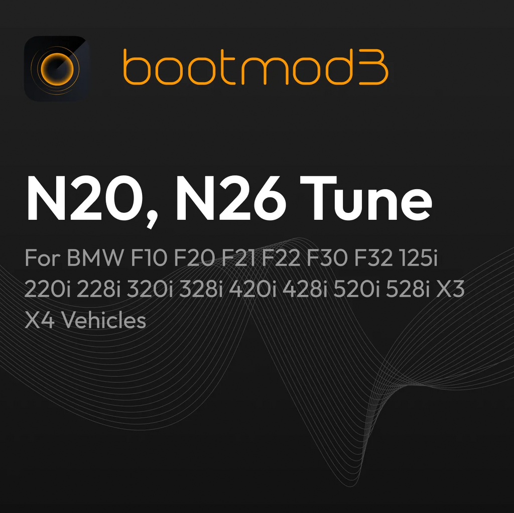 Build the ultimate tune for your N20 / N26 powered vehicle and go from stock to full race calibration, and everywhere in between, with a map switch in the provided mobile app. bootmod3 calibrates the factory vehicle modules over the OBD port in a matter of minutes in the convenience of your driveway or anywhere internet access is available.